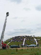 entstehen. Auf der ausgefahrenen Kanzel der Feuerwehrleiter
